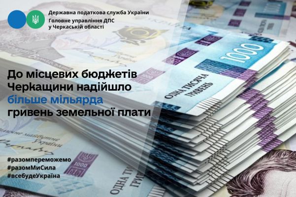 До місцевих бюджетів Черкащини надійшло більше мільярда гривень земельної плати